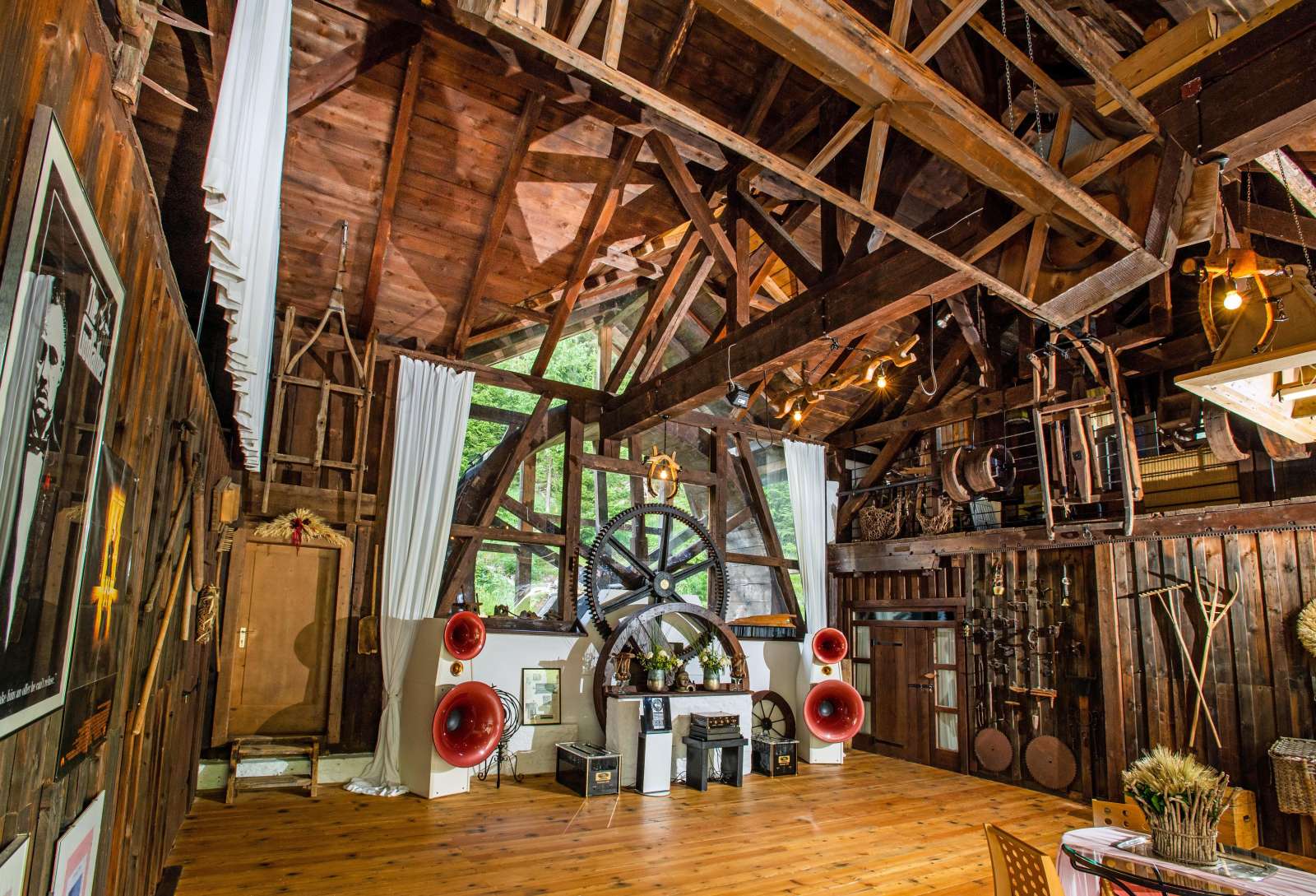 Vor dem klassischen Einfahrtstor wurde das Nebengebäude, eine ehemalige Mühle, in eine multifunktionale Tagungs- und Partylocation umgebaut – mit einem wasserbetriebenen Mühlrad, Kino sowie Dancefloor. Weitere Räumlichkeiten stehen dort noch für eine Küche, Atelier oder sonstige individuelle Verwendung zur Verfügung. 2 Garagenplätze sind auch vorhanden.