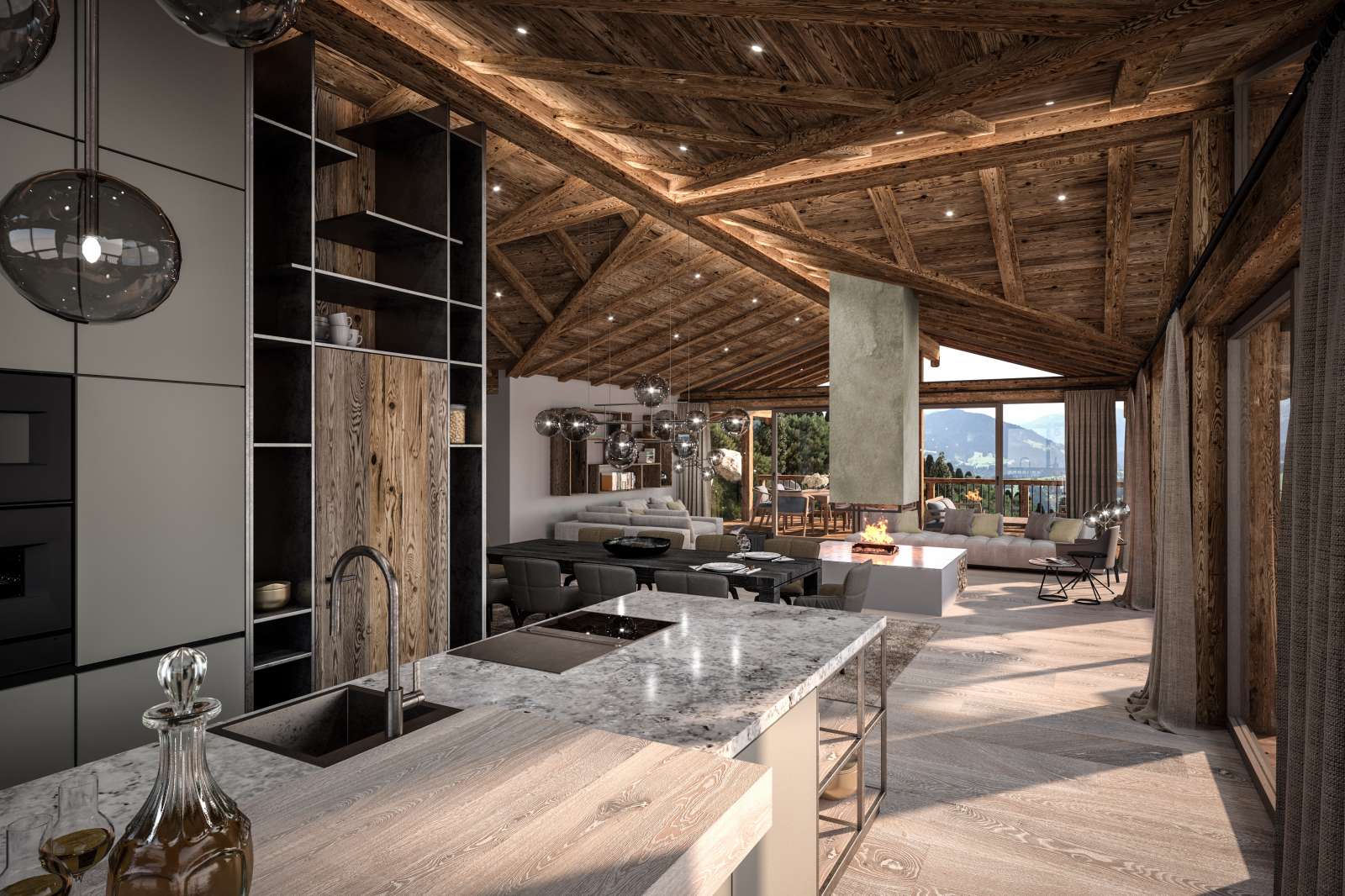 Wohn-Essbereich mit offener Küche im Dachgeschoss