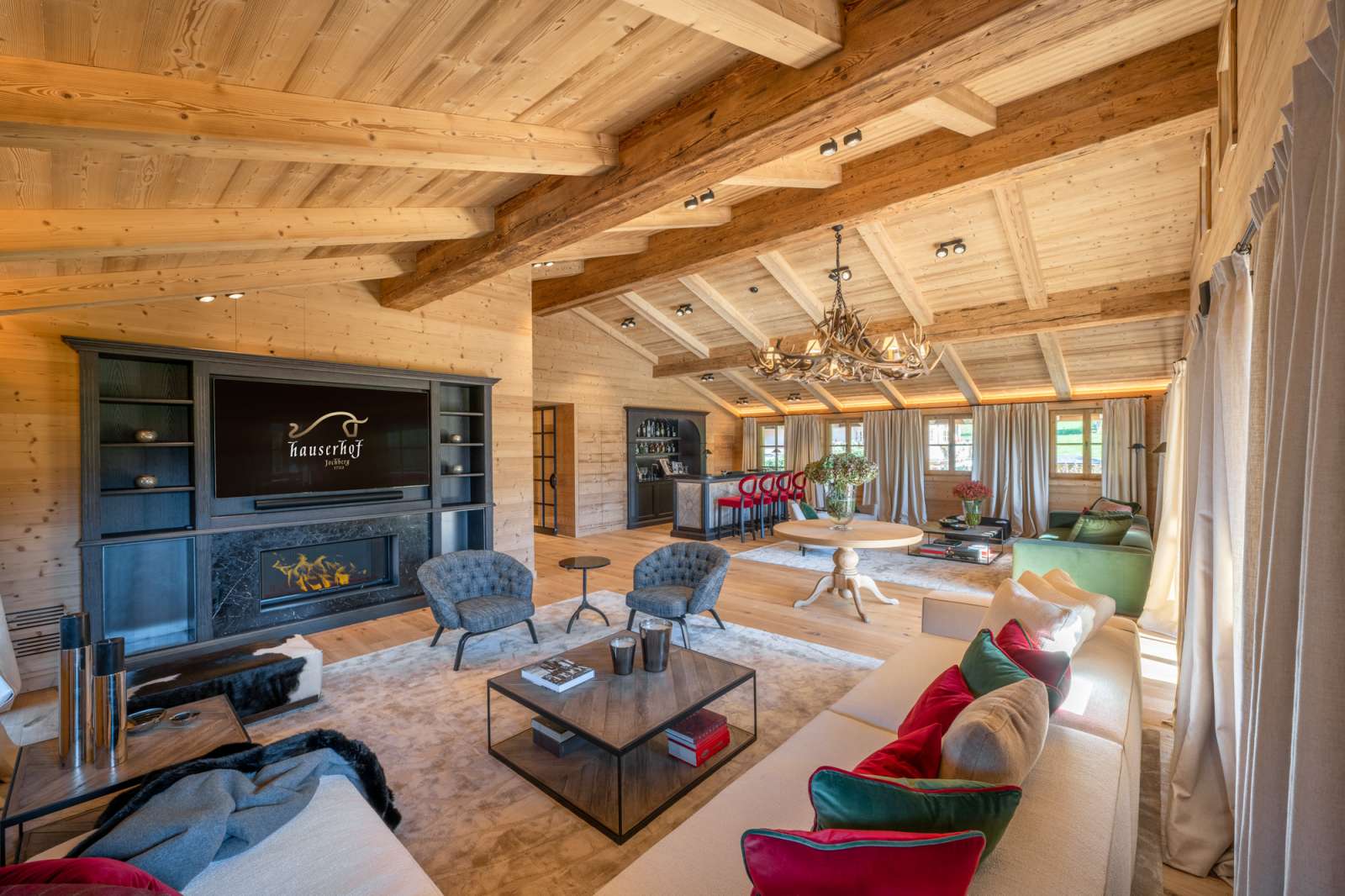 Ein Zuhause für Generationen ist auch der prachtvolle "Hauserhof" auf der sonnigen Talseite von Jochberg in erhöhter, idyllischer Lage. Bereits 1747 im nahegelegenen Westendorf als Bauernhof errichtet, wurde Balken für Balken sorgfältig abgebaut, fachmännisch aufbereitet und unter Nutzung der baulichen Erweiterungsmöglichkeiten, neuester Bauausführung und modernster Technik an diesem schönen Platz wieder aufgebaut und mit anspruchsvollem Interieur bezugsfertig ausgestattet. Alt und neu verschmelzen im Hauserhof - er fügt sich harmonisch in die benachbarte Almlandschaft ein. Es verbinden sich moderner Luxus und Großzügigkeit mit dem Bewusstsein für die Tradition Tirols. Der grandiose Ausblick fällt auf das weite Tal in Richtung Süden und schweift über das gegenüberliegende Ski-Gebiet bis zum Ortskern von Jochberg. Sonne und Ruhe sind ständiger Begleiter.
