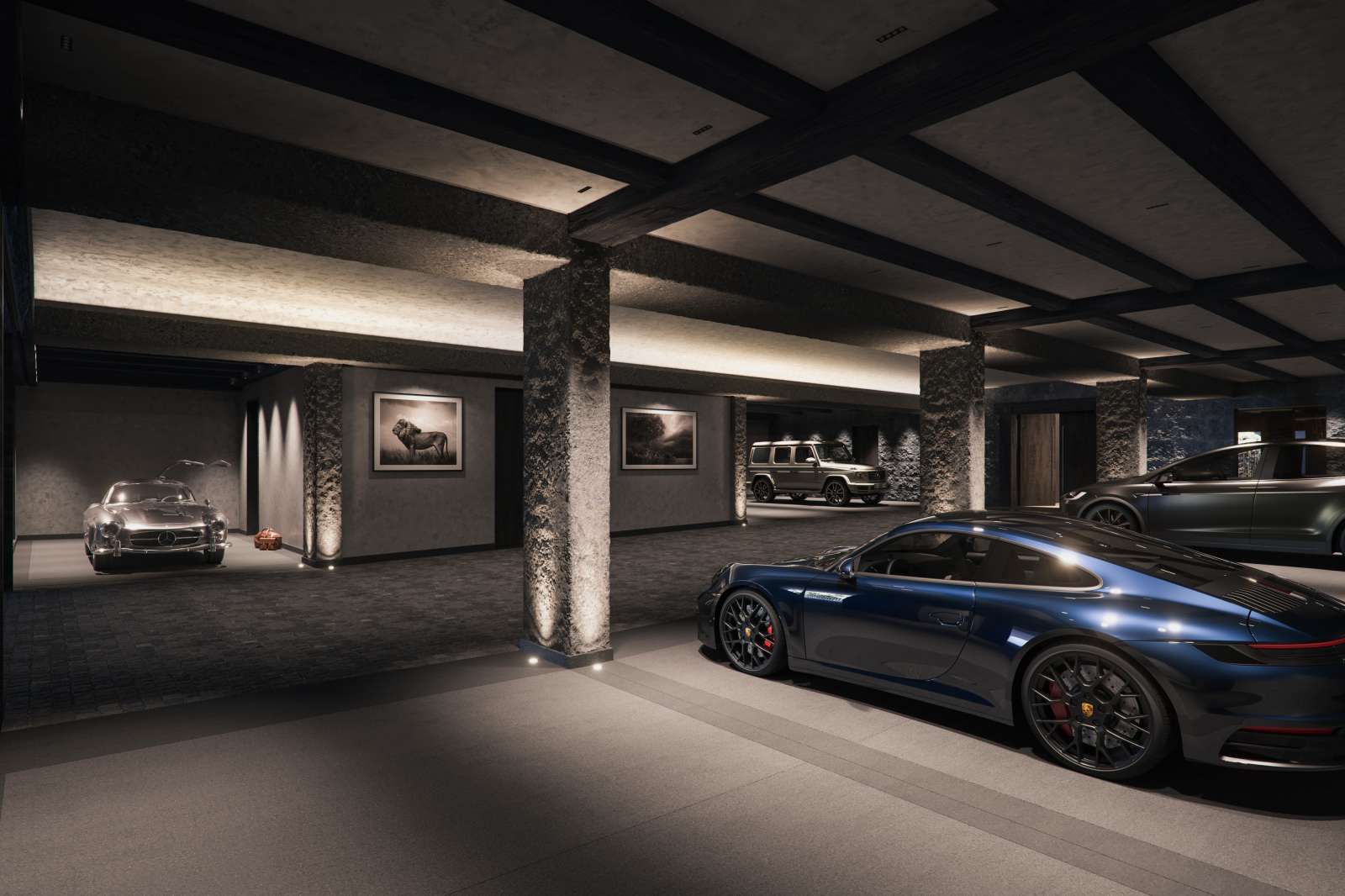 Das Untergeschoss ist eine Oase der Entspannung und Unterhaltung. Ein Fitnessraum mit besten Geräten, ein großzügiger SPA-Bereich, ein Weinkeller mit Bar, ein Heimkino und die Tiefgarage mit 11 PKW-Stellplätzen sind selbstverständlich.