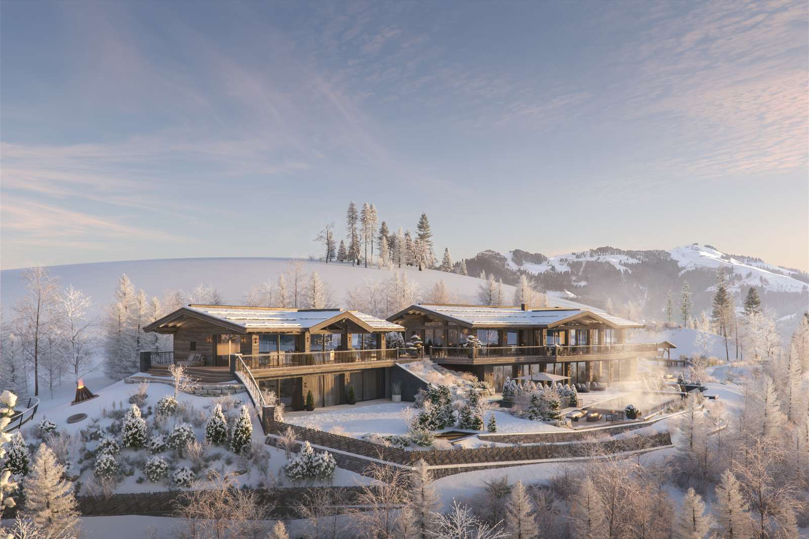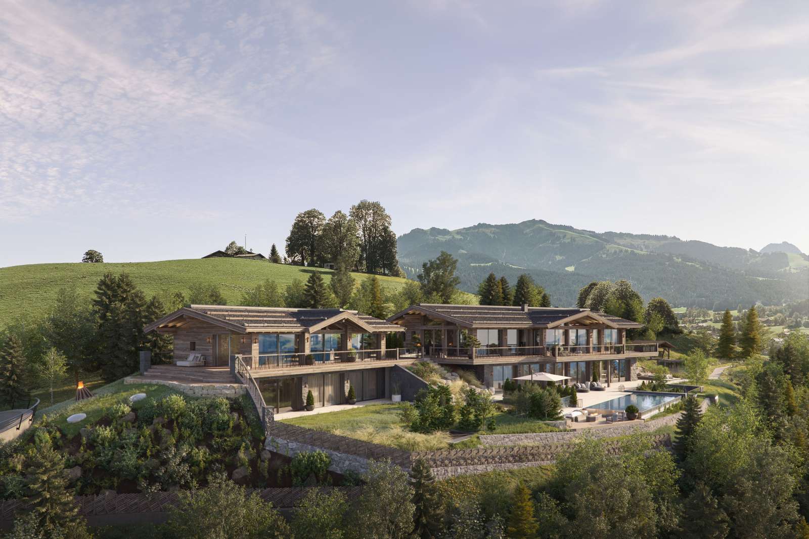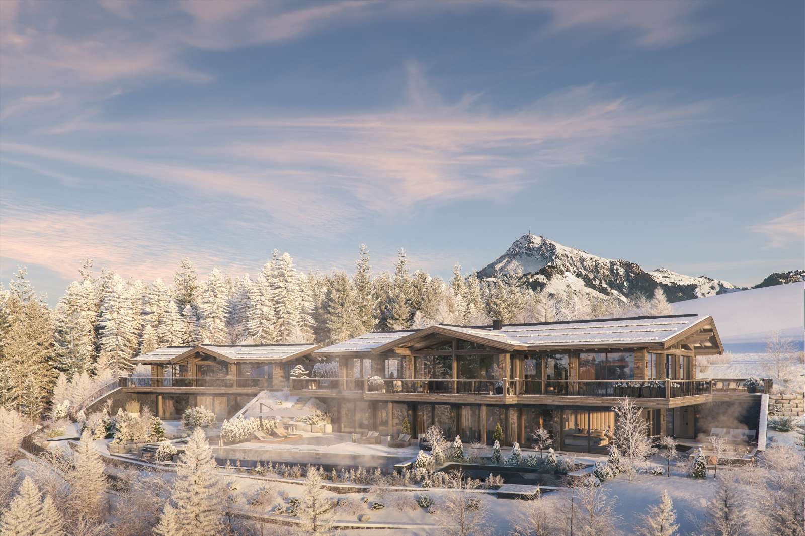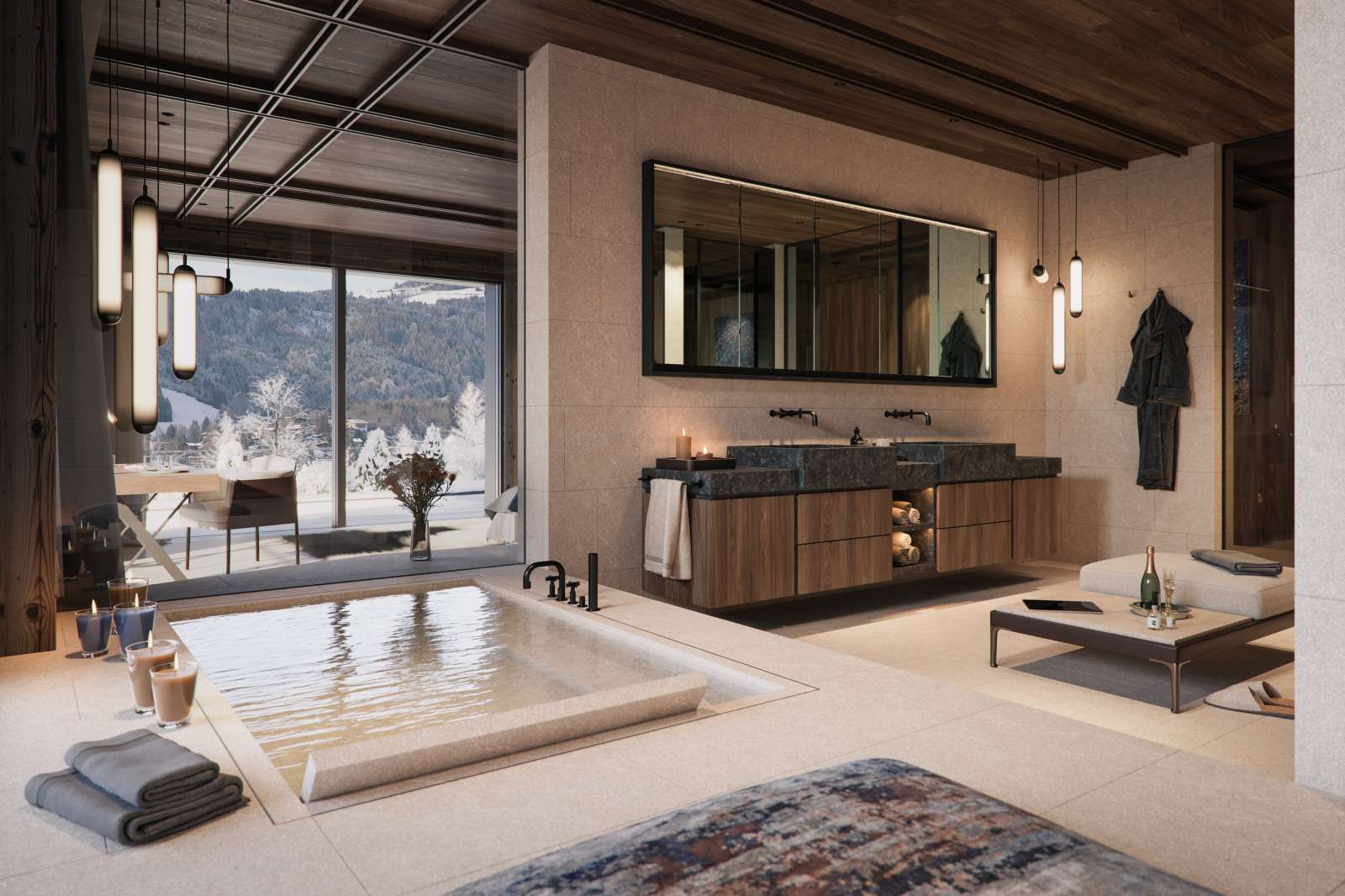 Ihr erster Blick am Morgen gilt dem Berghang auf der anderen Talseite und dem Wilden Kaiser zu Ihrer Rechten. Außergewöhnliche Details, alle erdenklichen Annehmlichkeiten und luxuriöse Ausstattungen ergänzen die unglaubliche Kulisse perfekt.