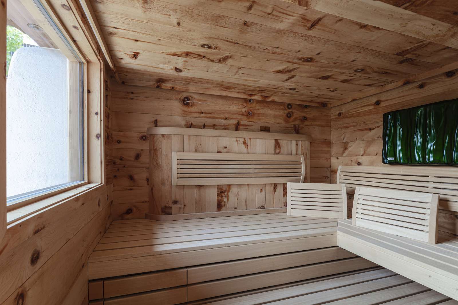 Im Erdgeschoss befinden sich das Entrée mit Garderobe und Gästetoilette, die umfassend ausgestattete Küche, die reizende Stube mit Übergang ins Wohnzimmer samt wohligem Kachelofen, weiters eine TV-Lounge, die zugleich als Arbeitszimmer genützt werden könnte. Der praktische Garten flankiert das Haus in südlicher und westlicher Richtung, wo das Saunahäuschen direkt an den überdachten Freisitz zum Entspannen einlädt. Im Zufahrtsbereich sind vor der Doppelgarage mit separatem Ski-Raum weitere PKW-Stellplätze.