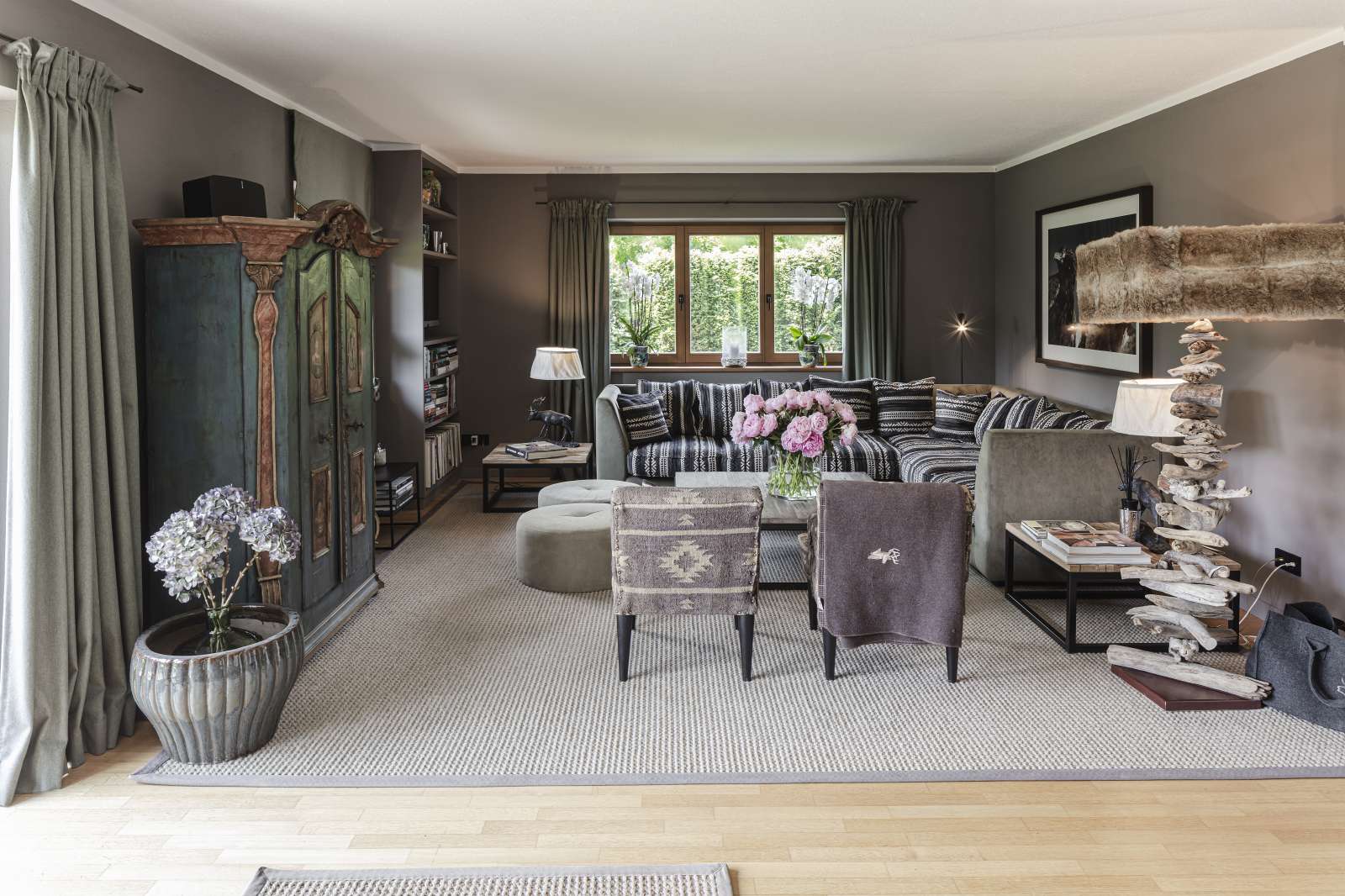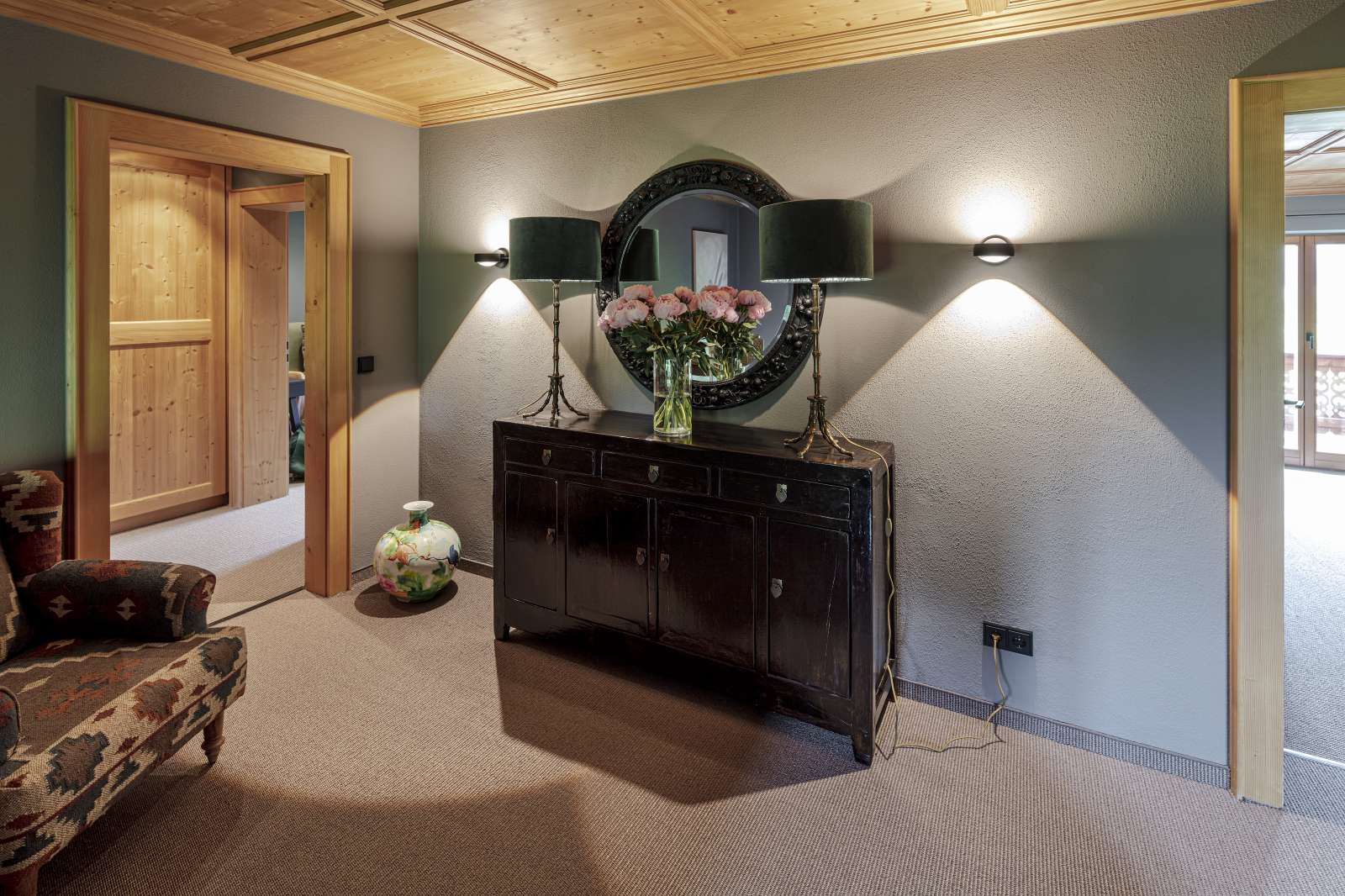 Mit Geschmack und Anspruch an hochwertige Materialien und deren Verarbeitung wurden sämtliche Räumlichkeiten über drei Etagen mit insgesamt ca. 350 m² bereits bezugsfertig eingerichtet. Im Focus stand dabei die beliebte Tiroler Gemütlichkeit, die zum Verweilen einlädt und dabei auch mal den Alltag vergessen lässt.