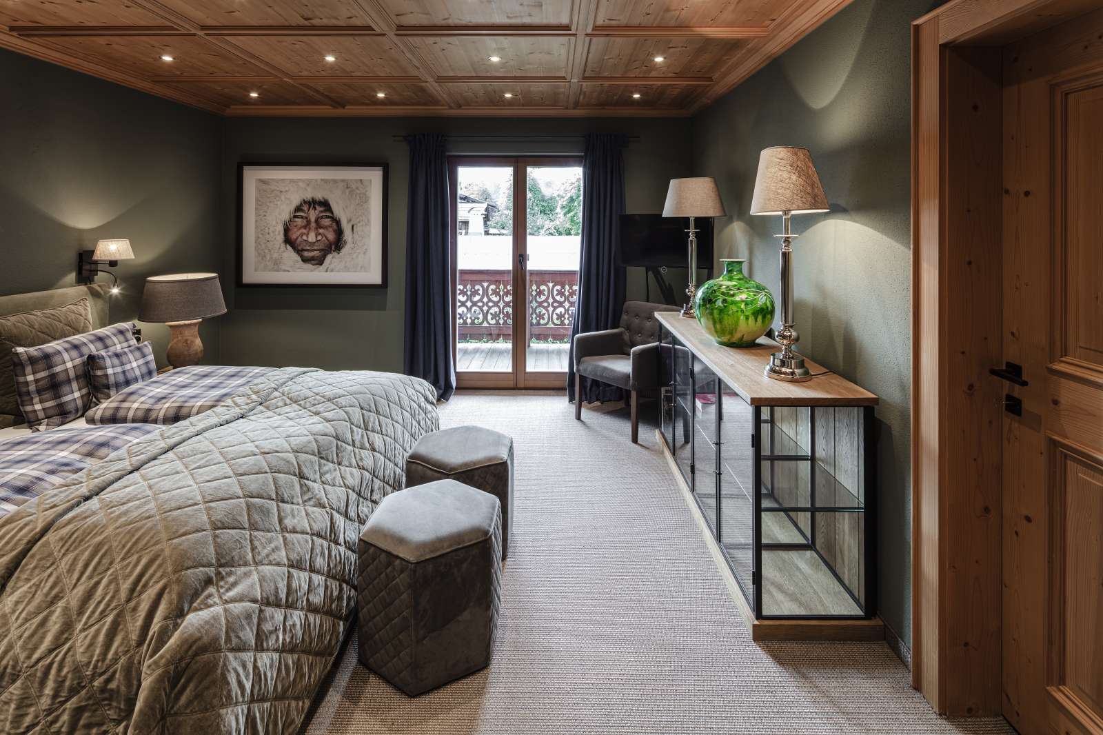 Im Obergeschoss befinden sich drei der insgesamt fünf Schlafzimmer jeweils mit eigenem Bad, eine Ankleide und der herrliche Südbalkon.