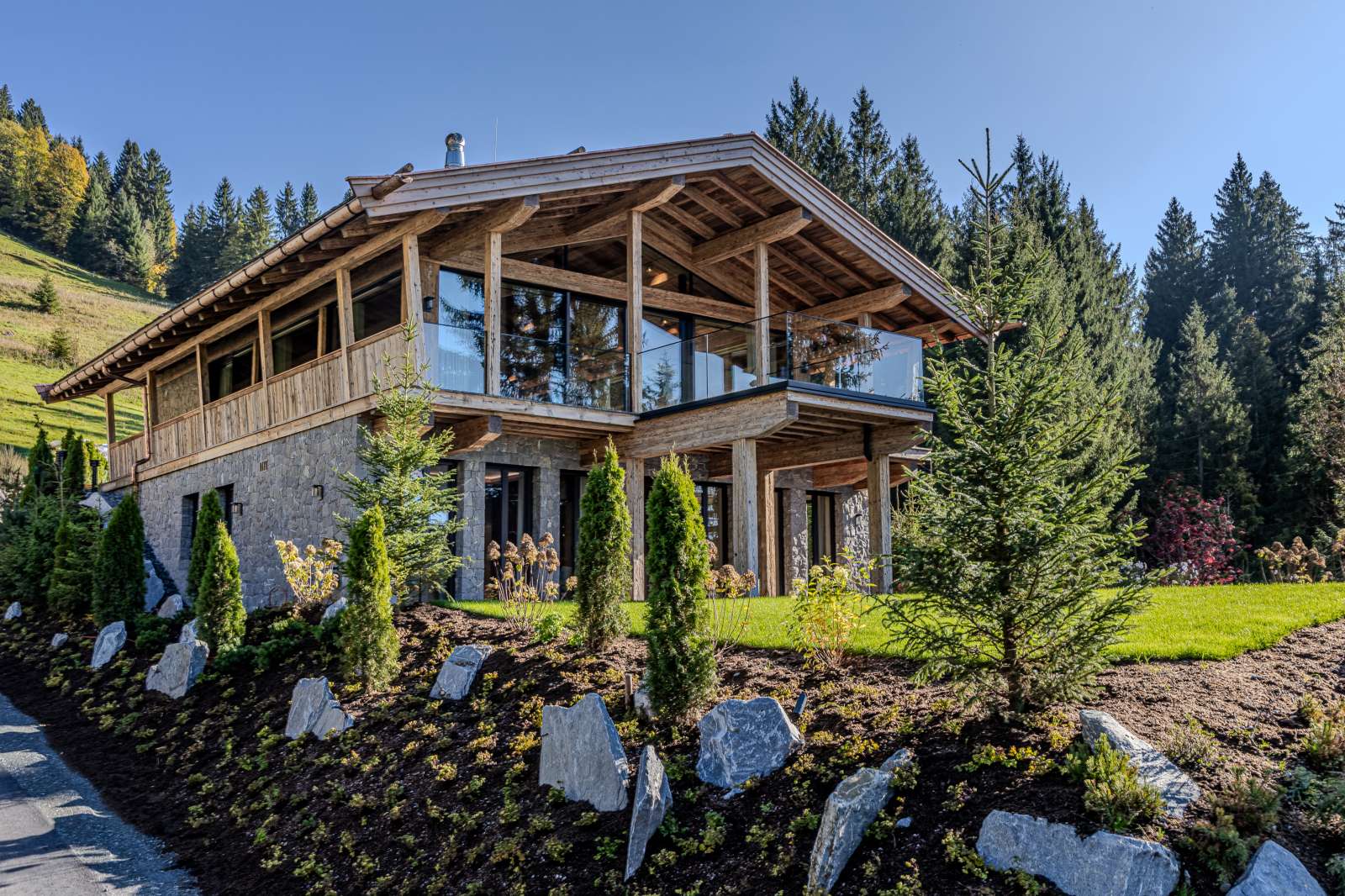 Dieses jüngst fertig gestellte, elegante Hideaway befindet sich in Bestlage, erhöht auf der beliebten Bichlalm und bietet einen unvergleichlichen Panoramablick über das Tal hinweg zu den umliegenden Hausbergen. Dieser Platz wirkt schier magisch, ein Rückzugsort in der Stille, für alle Sinne und im Einklang mit der Natur - ideal zum Abschalten und Genießen.