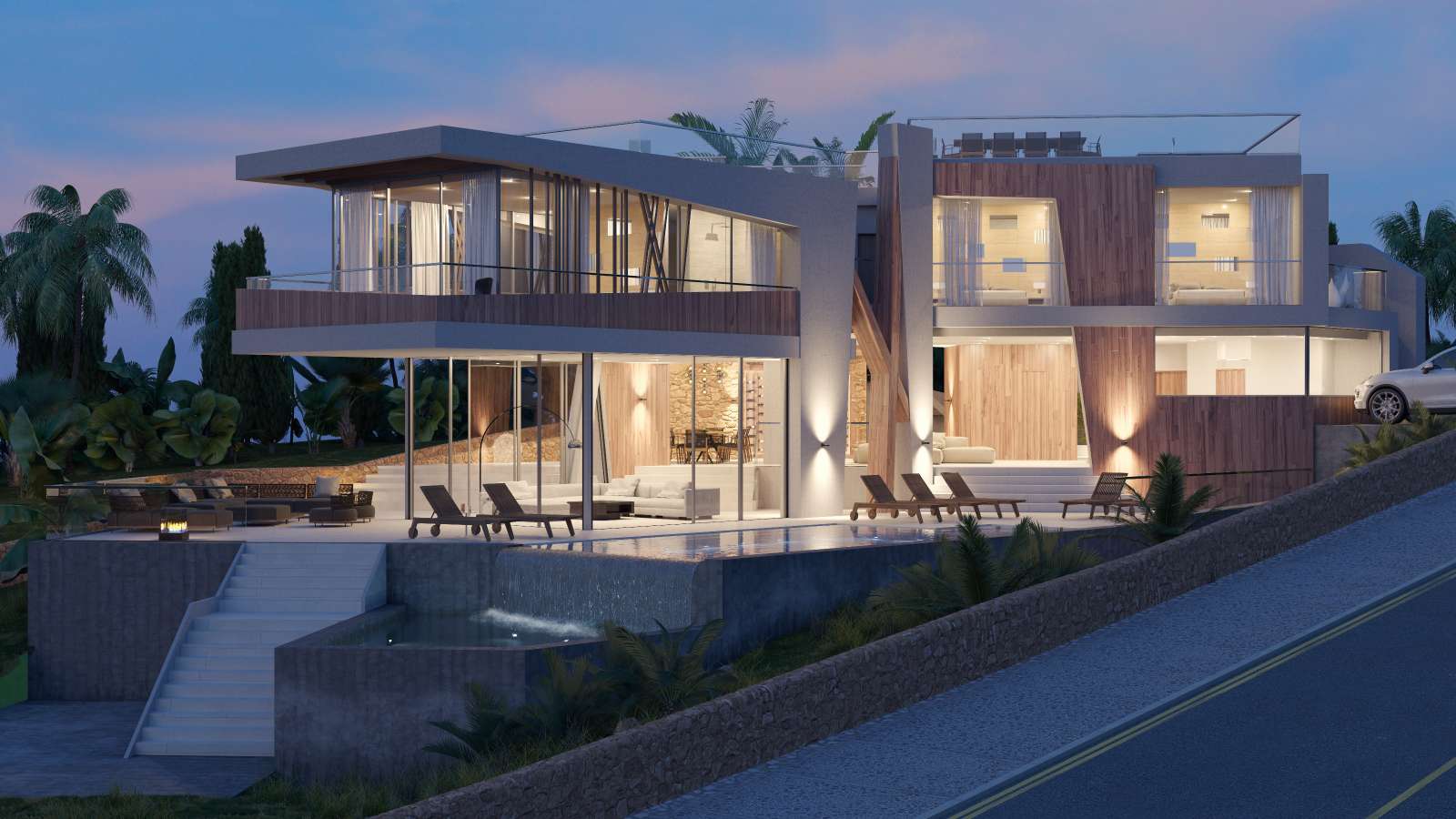 The modern architecture combined with traditional materials offers a wonderful atmosphere. The open designed and well-lit living – dining room passes directly into the outdoor lounge with an infinity pool.
