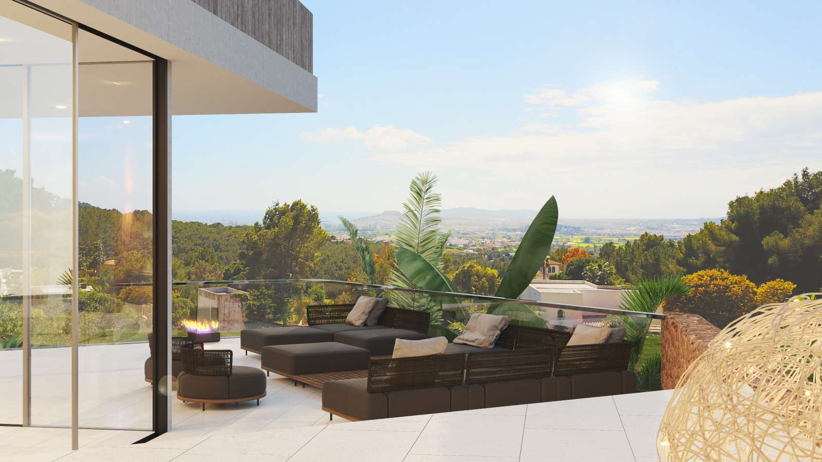 The housing estate Can Furnet offers stunning views to the harbour of Ibiza, the old town and the isle of Formentera. The villa Casa Monet has been built on a sensational plot.