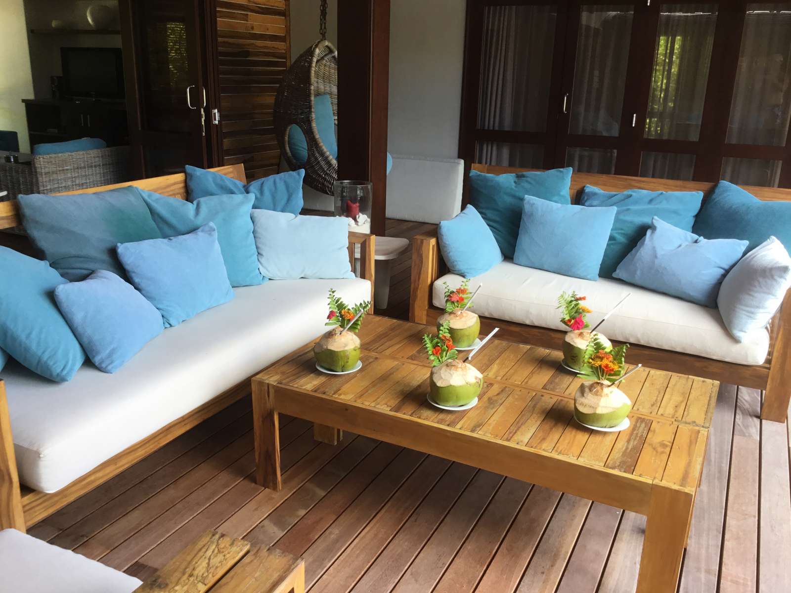 The garden has 2600sqm, there are growing palm trees and it pass directly into the beautiful beach. Garden furniture: table and chairs, beach loungers and beach chairs,