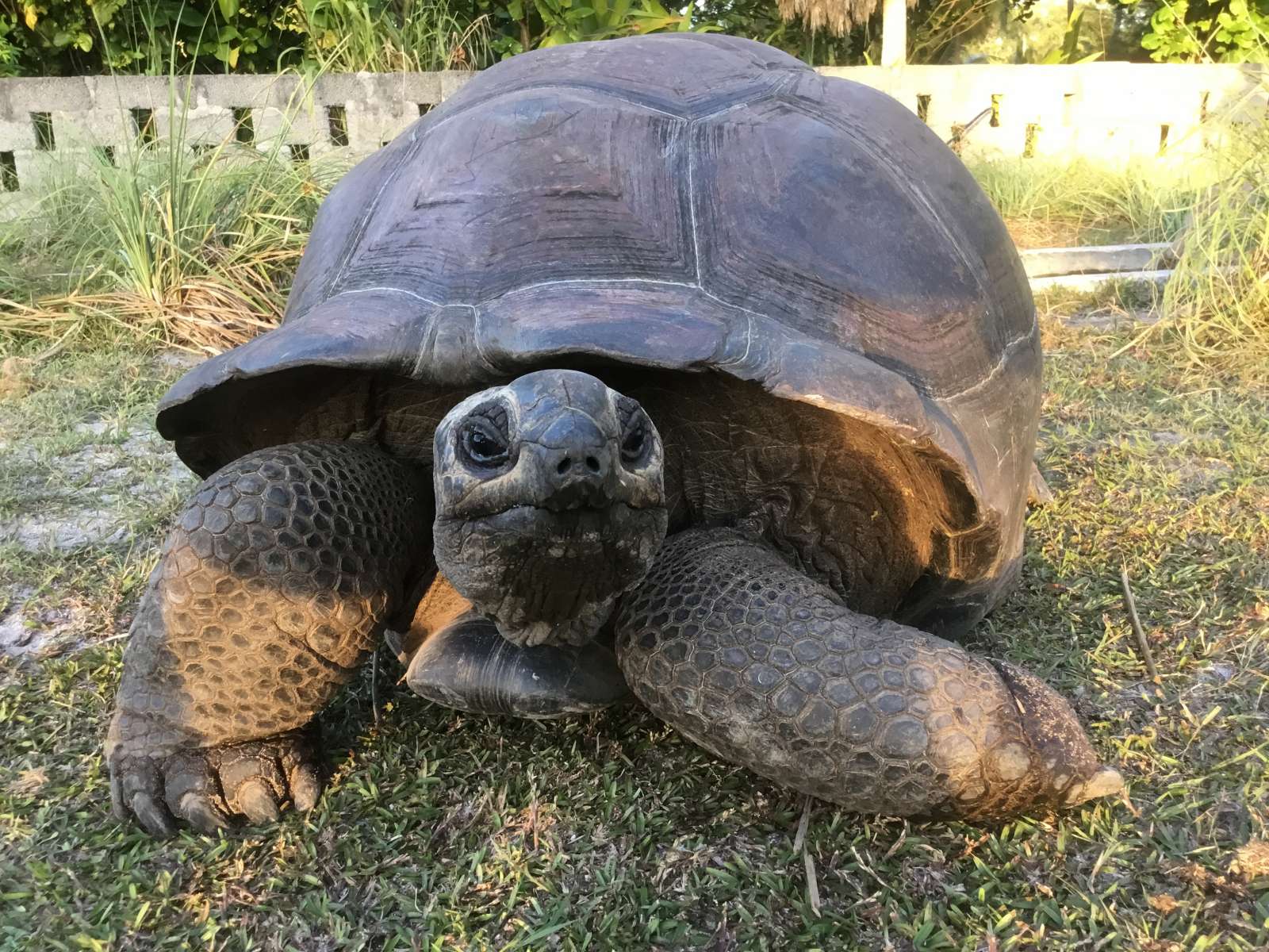 The island Desroches is 6 x 1,5km, part of the Outer Islands and 240km south of Mahe. There are daily flights from Mahe to Desroches and back, the time of flight is about 35-40 min. Half of the island is a nature reserve, only with palm trees, Casuarina trees, etc. There is also a nature reserve station with scientists, watching the breeding of the tortoise, the sea turtles, the seabirds, and the underwater world. At the moment there are about 60 tortoise on the island. It is beautiful to explore the island by bike.