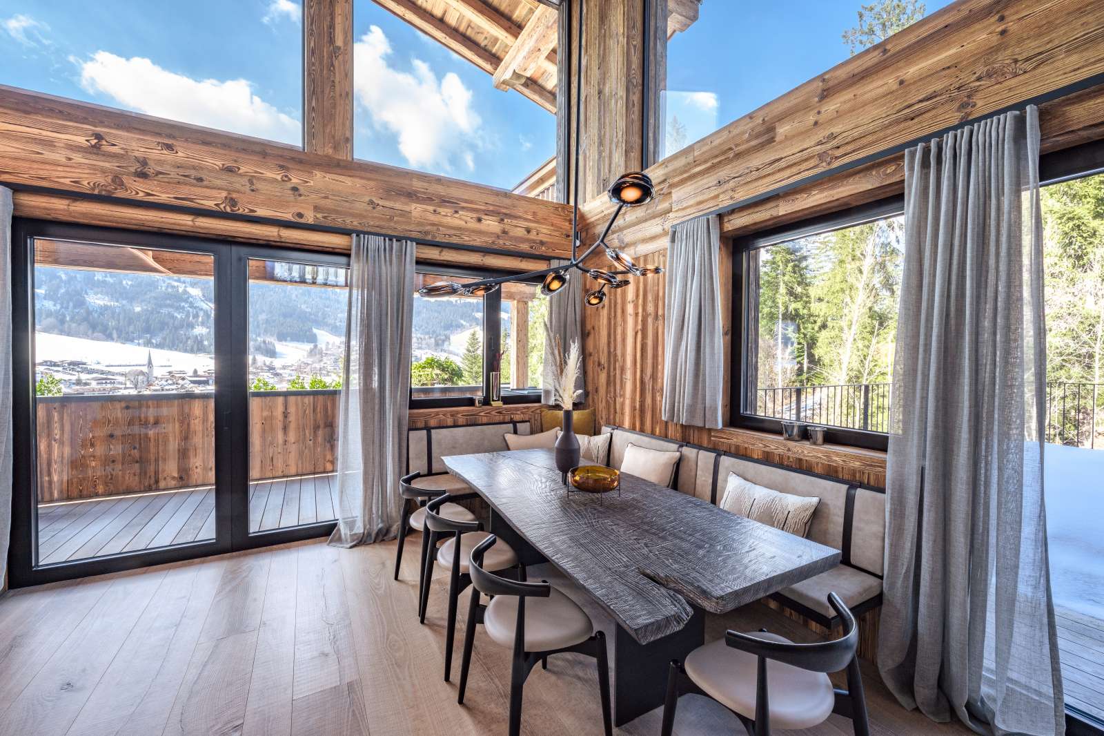 Von der Sonne verwöhnt und mit unverbaubarem Blick erhebt sich die Gams Lodge, gelegen an einem Privatweg, aus den umliegenden Almwiesen und erfüllt höchste Ansprüche. Der Blick ist atemberaubend schön und führt über die Bergwelt im Süden und das Hahnenkamm-Gebiet bis hin zum Wilden Kaiser im Norden.