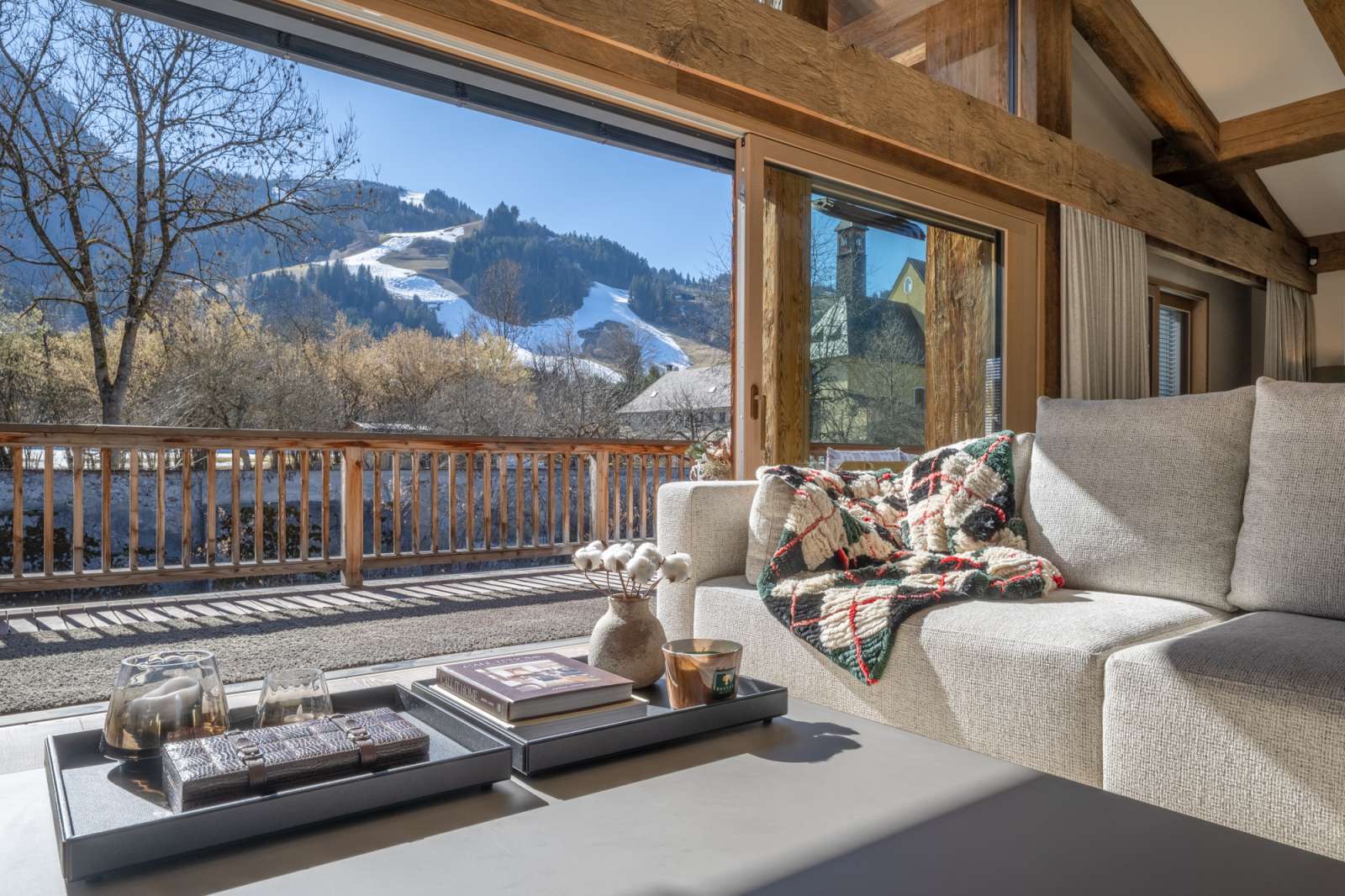 Die Hauptausrichtung führt über die direkt angrenzenden Parklandschaften zum Hahnenkamm Gebiet und dem Wilden Kaiser Gebirge. Diese perfekte Positionierung fängt die Sonne wunderbar ein und sorgt für maximale Ruhe in den Wohnbereichen, die sich über zwei Ebenen erstrecken. Wahrer Luxus ist zudem die fußläufige Erreichbarkeit aller Annehmlichkeiten der Gamsstadt - sei es die Fußgängerzone mit all ihren Boutiquen, Restaurants und Cafés, die Gondelbahn oder der nächste Golfplatz.