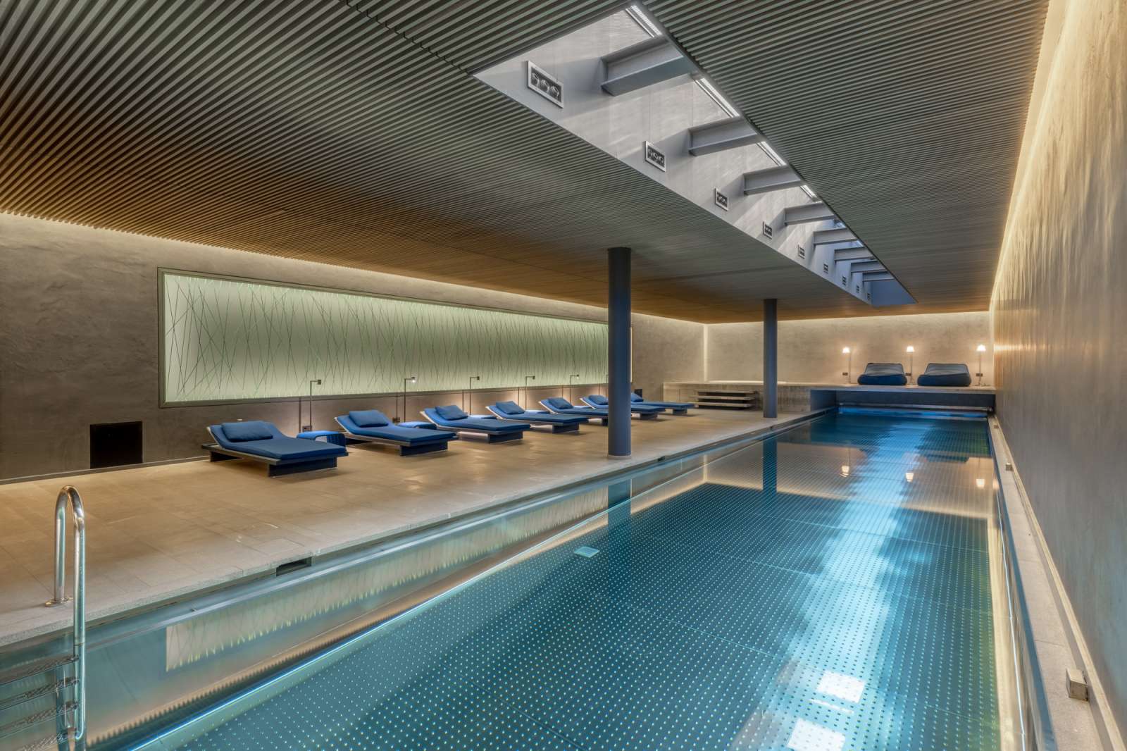 THE GRAND bietet seinen Bewohnern einen grandiosen Wellness- und Entertainment Bereich. Über ca. 480 qm verteilen sich ein ca. 20 Meter langer Indoorpool samt Relaxzone und Whirlpool, Sauna, Dampfbad, ein professionell ausgestattetes Gym, Massageraum, Billard- und Tischtennis-Raum sowie Heimkino. Um all dies auch mit höchster Privatsphäre genießen zu können, bucht man online sein persönliches Zeitfenster zur ausschließlichen Nutzung ein - es wurde an alles gedacht. Wenn man die Anteile aus diesem Miteigentum in Zahlen darstellen möchte, hält man gemeinsam mit dem Erwerb des Penthouses insgesamt ca. 40% Anteile am gesamten Haus.